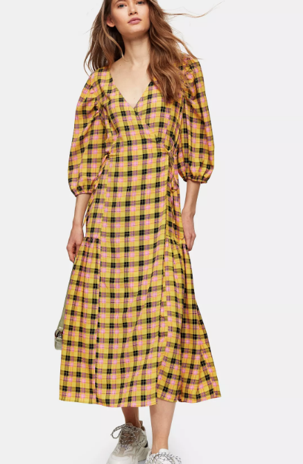 Topshop Yellow Check Tie Wrap Midi Dress $75