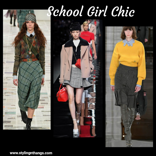 School girl chic: The preppy style is great for a casual, daytime look. Designers played up this theme by pairing mini to knee length skirts with cardigans, and button up shirts.
