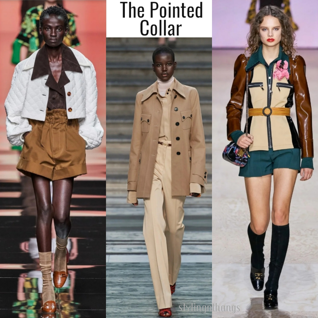 Detailed necklines made a strong appearance this season. Designers from Fendi to Louis Vuitton showcased polished and structured looks with exaggerated pointed collar tops.