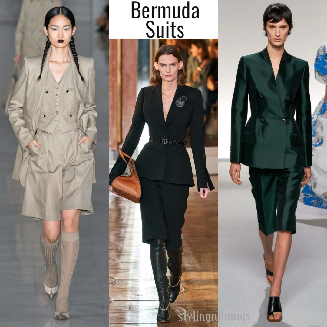 If you can’t get with the hot pants trend, maybe bermuda shorts are more your aesthetic. A new update on the classic suit, the tailored pants have been replaced  with bermuda shorts. Bermuda shorts dominated the runways and in particular tailored, polished suits were seen down every major designer’s runway. Max Mara put a  fun twist on their suits, adding fun pastel colors and matching vest in head to toe monochromatic looks.